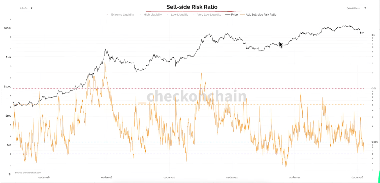 Sell Side Risk: está em patamares bem baixos, compatíveis com regiões de bear market de ciclos anteriores. Esses mesmos patamares foram vistos nos fundos de 2018, 2020 (COVID) e 2022.
