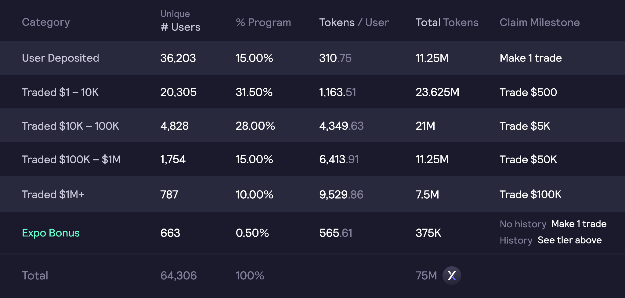 Atenção: Diferente de outros PerpDEXes, a qualidade do trade importa tanto quanto o volume, isso é, não faça spam.