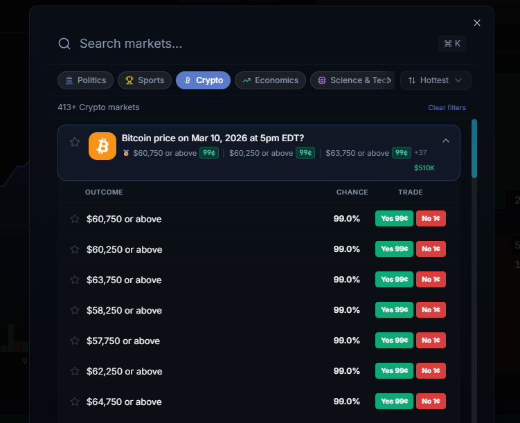 Passo 3. Fazer apostas em mercados que domina, como: cripto, política e esportes. Quanto mais volumes mais pontos.