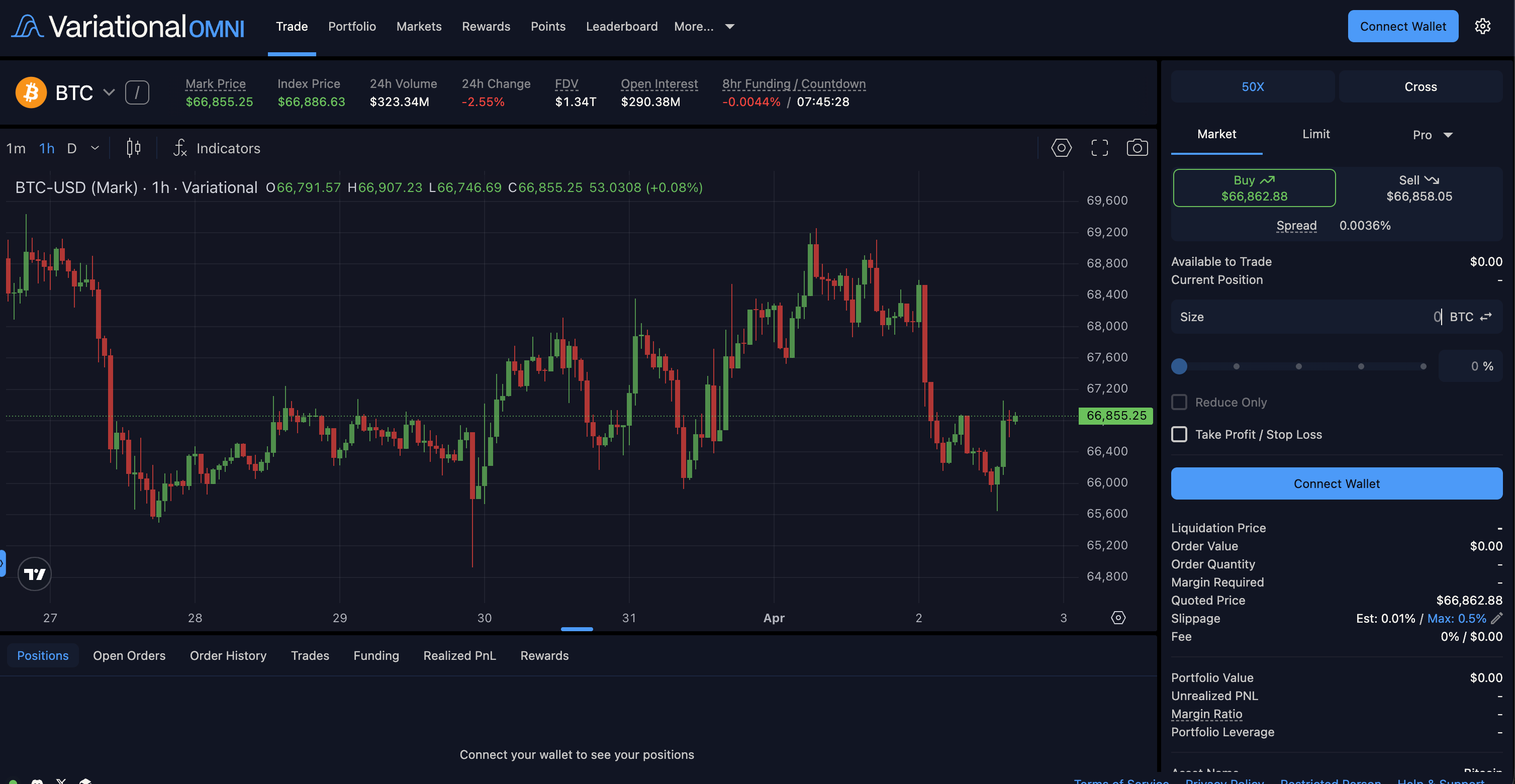 Passo 1. Acessar ethereal.trade e conectar com a carteira EVM.