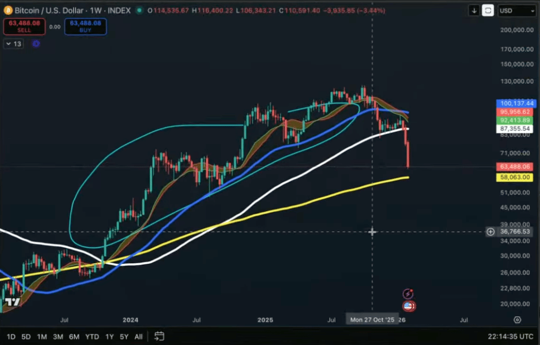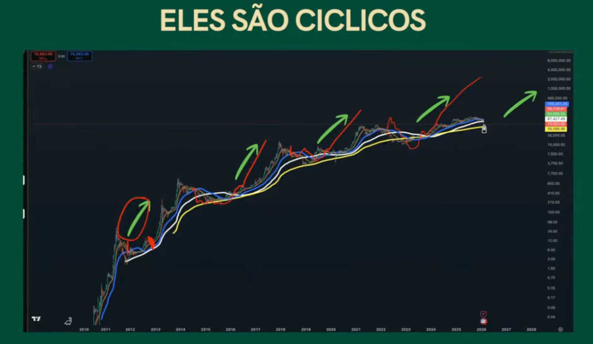 O divisor de águas está na estrutura de preço, porque quando o Bitcoin está acima da média móvel de 50 semanas, o mercado tem tração.