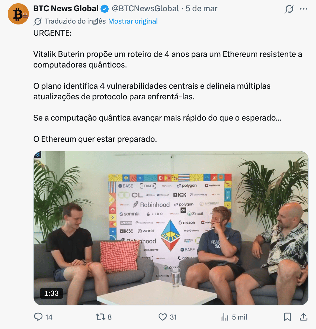 Assim como vimos o mundo pós internet, estamos caminhando para um mundo pós computação quântica, e, a Ethereum, Bitcoin e demais moedas também precisam estar preparados para esse novo modelo.