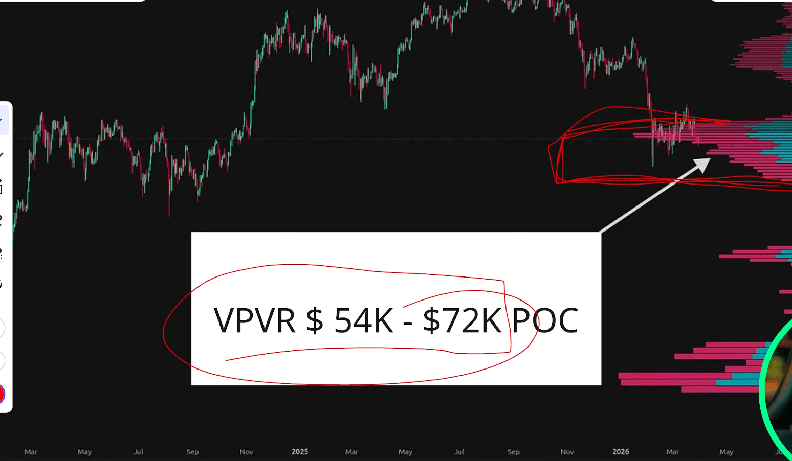 Aqui entram os cenários baseados no VPVR (Volume Profile Visible Range), que mostra o ponto de controle, a região onde mais volume foi negociado historicamente.