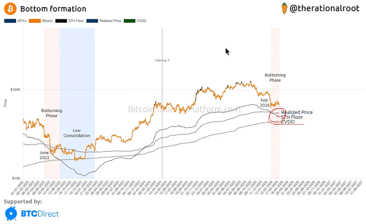 Nos dois cenários, a região de US$ 54.000 a US$ 58.000 aparece como zona de máximo drawdown e é nesses níveis que os aportes já estão programados via DCA.