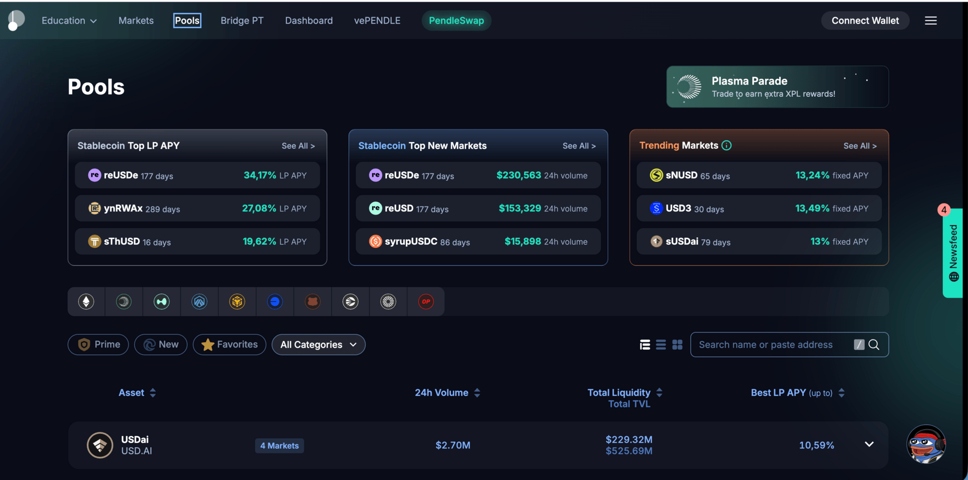 3. Pendle + sUSDai (PT) — rendimento fixo