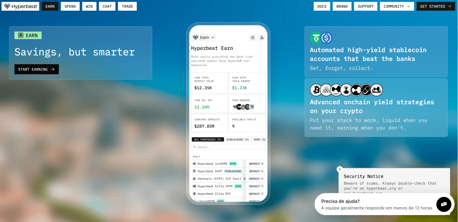 A Hyperbeat é um protocolo de farming construído dentro do ecossistema da HyperLiquid, operando diretamente na HyperEVM.